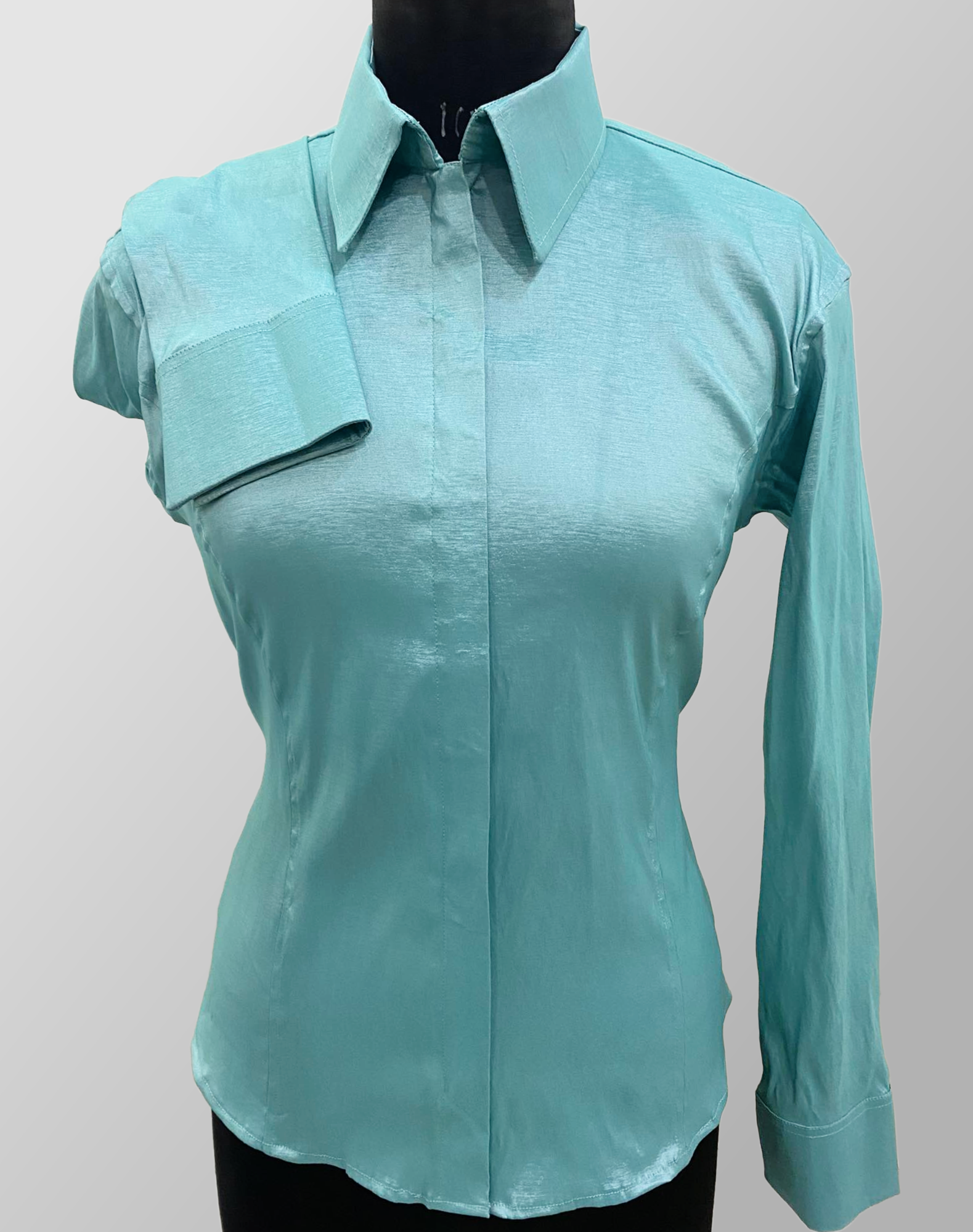 Our Taffeta Zip Up Show Shirts offer a hidden zipper for a clean polished look. The Taffeta material offers a sleek shine to them, which keeps a simple and classy look while still offering some glam to catch the judge's eyes.