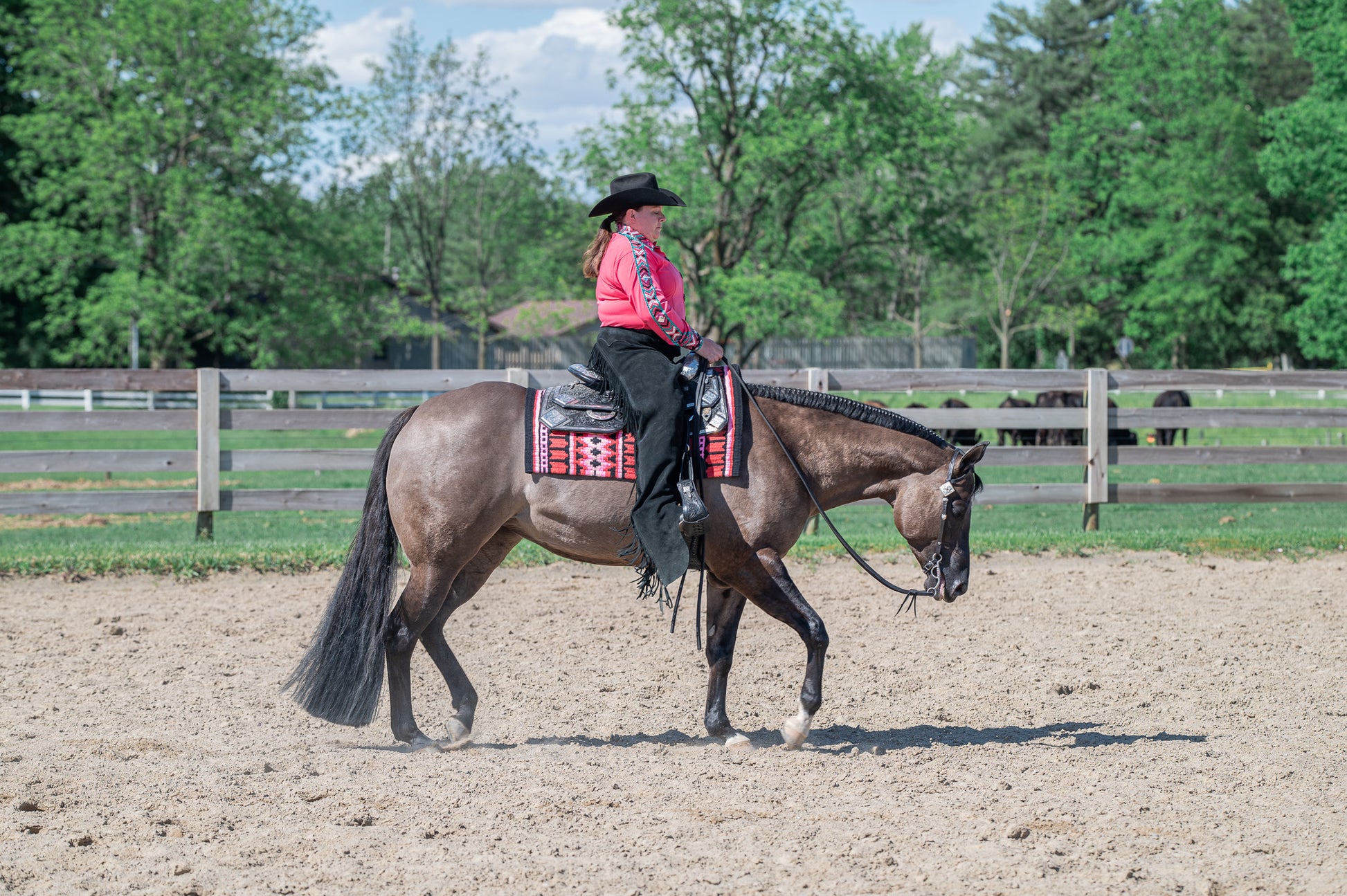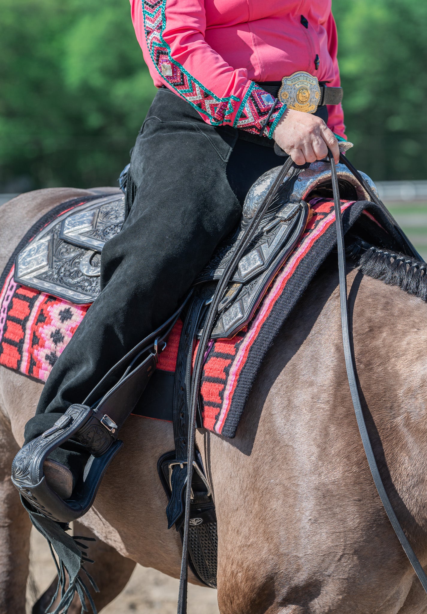 Black based western show pad accented with Coral, Light Pink and Blush.