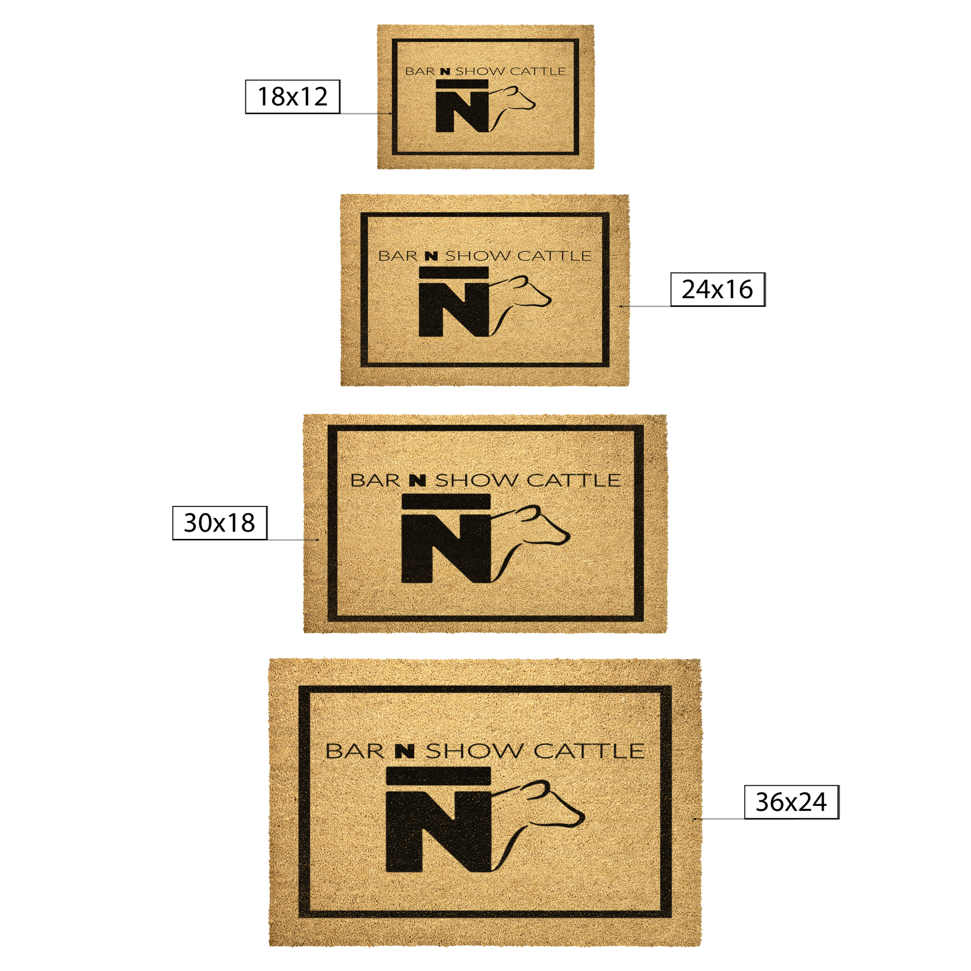 Custom your very own entryway door mat with your ranch, farm, or business name. You can also add a catchy slogan, the possibilities are endless! This durable doormat is perfect for all households. Our coir doormats are made highly durable, easy to maintain material, and professionally stenciled with fade-resistant dyes. The mat fibers easily remove dirt from footwear while retaining colorfast brilliance season after season. Give your home a warm welcome and keep your entryway clean. • 4 Sizes - 36"x24", 30"x18", 18"x12", & 24"x16" |