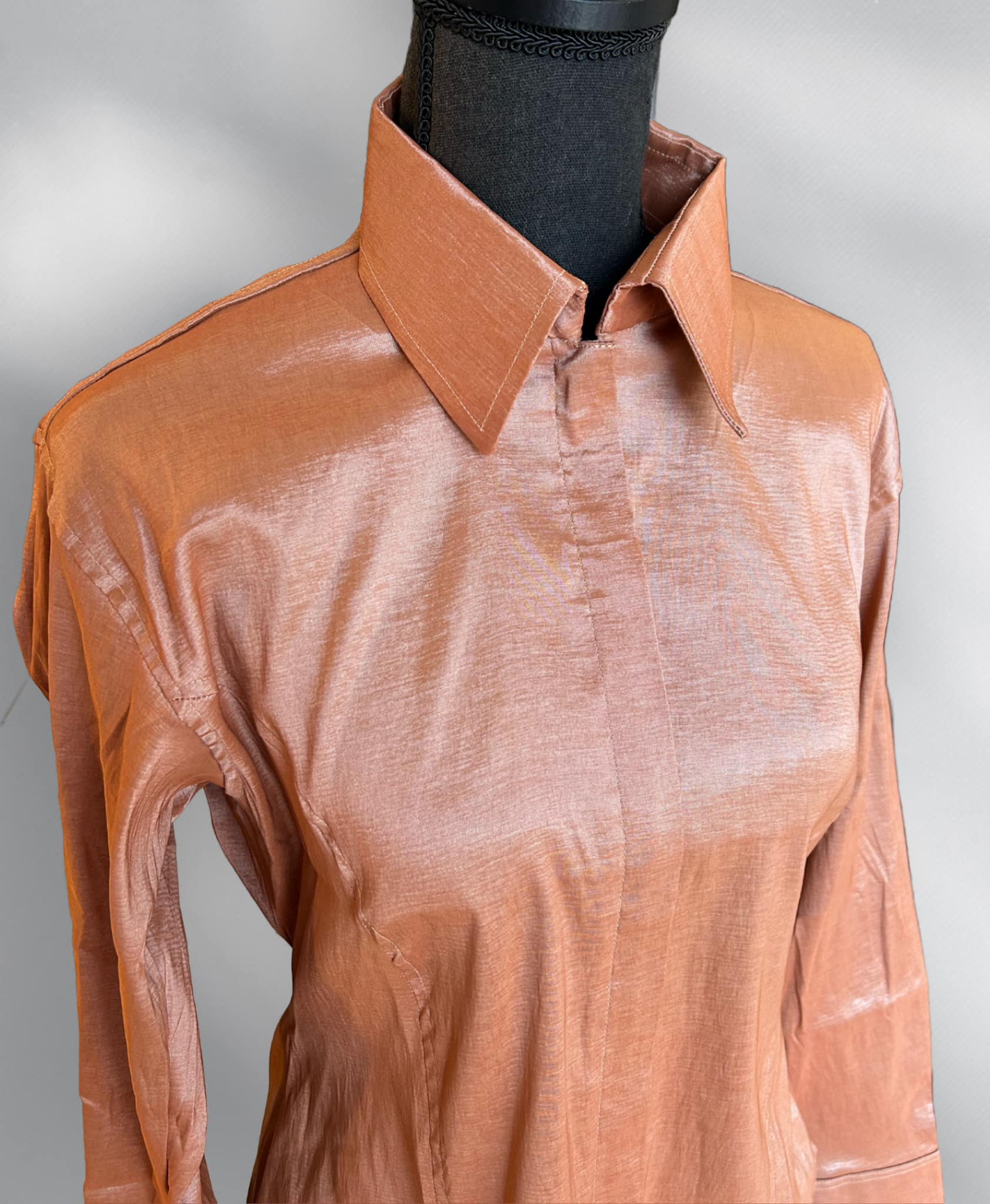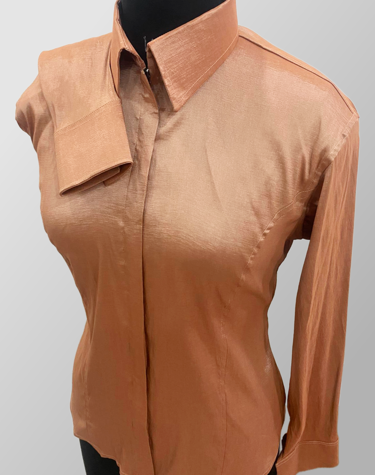 Rose Gold Fitted Taffeta Zip Up Shirt