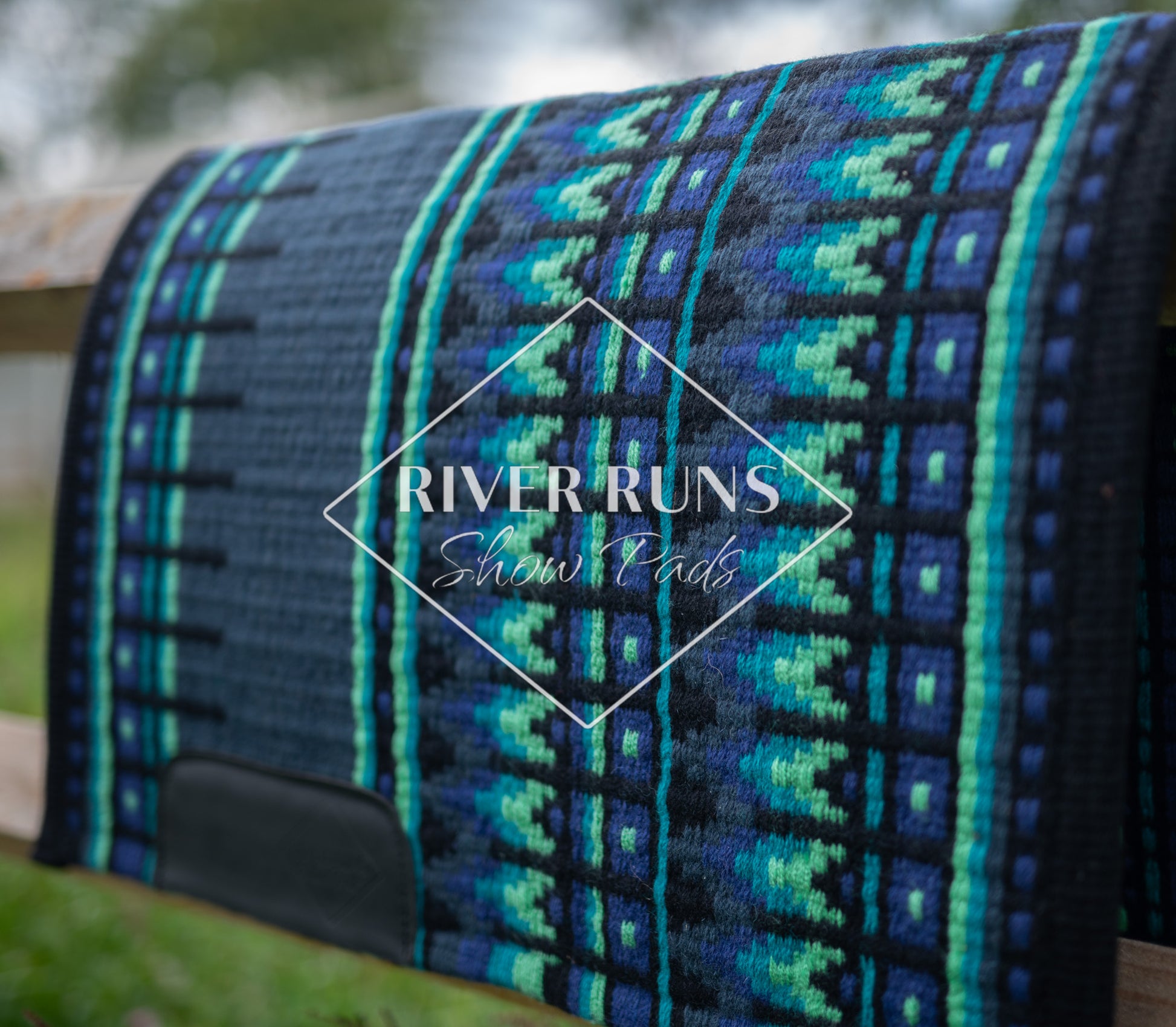 Black based pad accented with Teal, Light Green, Slate Blue and Navy.