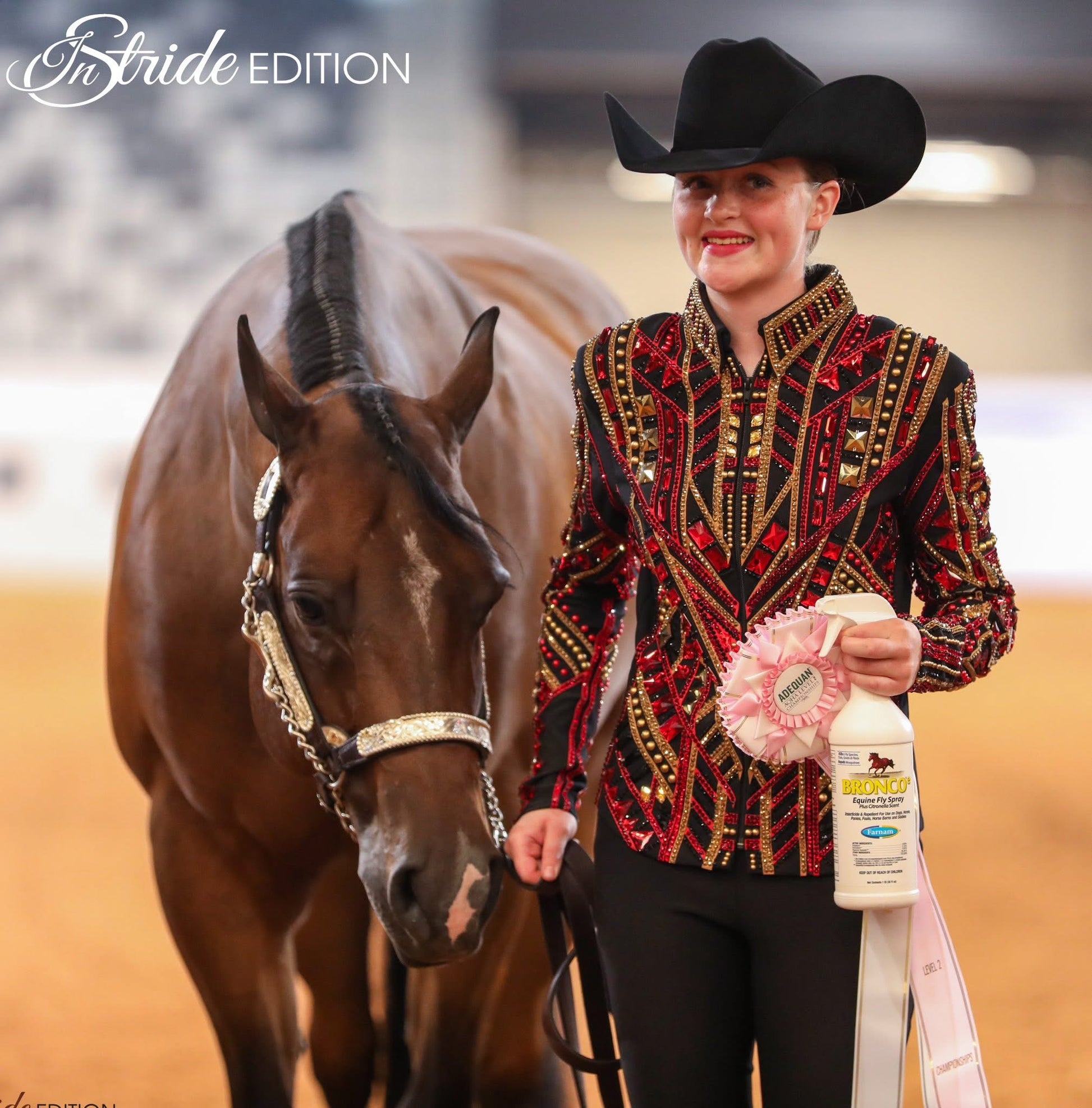 Stunning custom made (2025), one of a Kind, Sarah Ryan Designs Show Jacket. Black base, accented with red and gold. Approximately a Women’s Small with stretch. Flattering design with bold and beautiful colors.