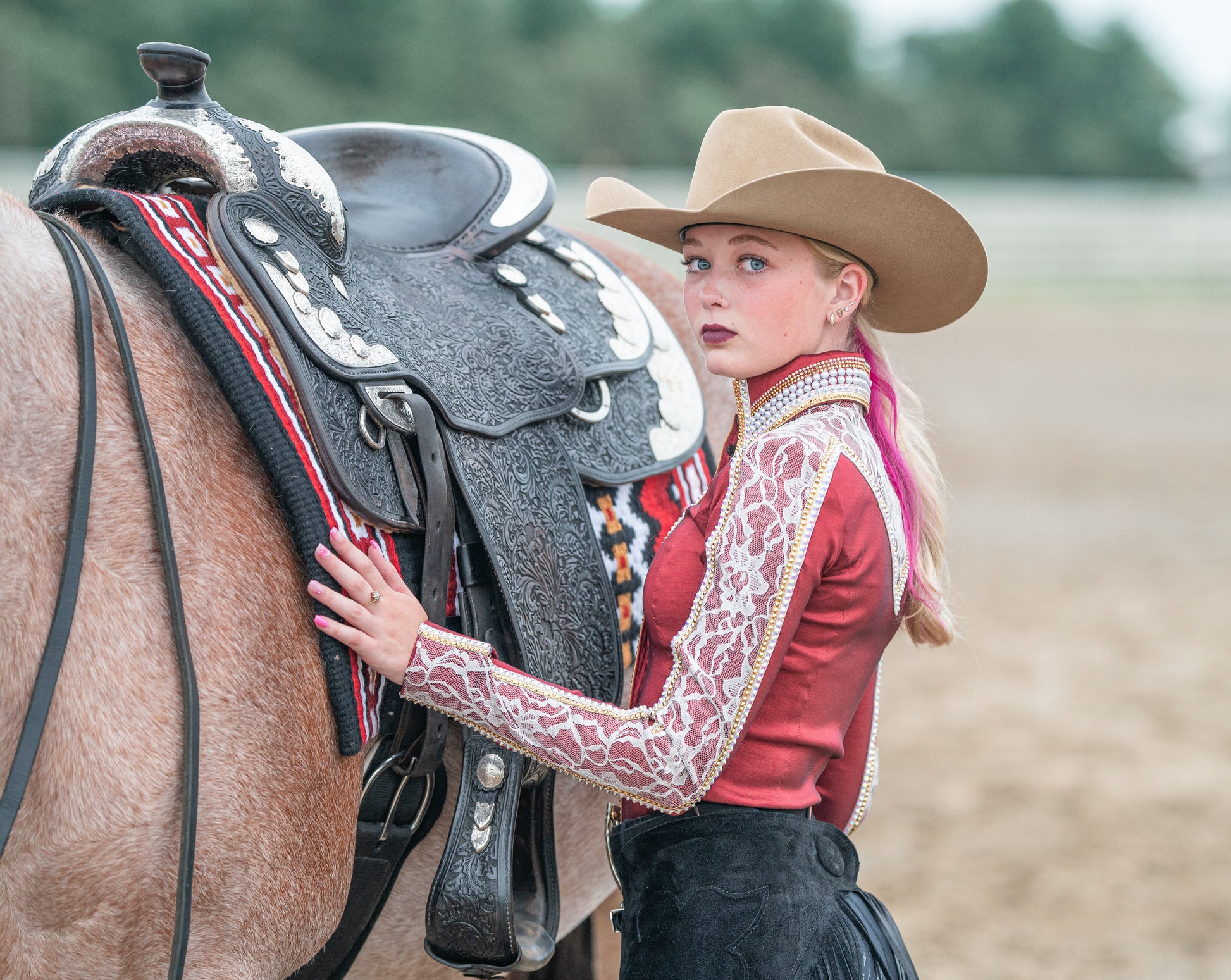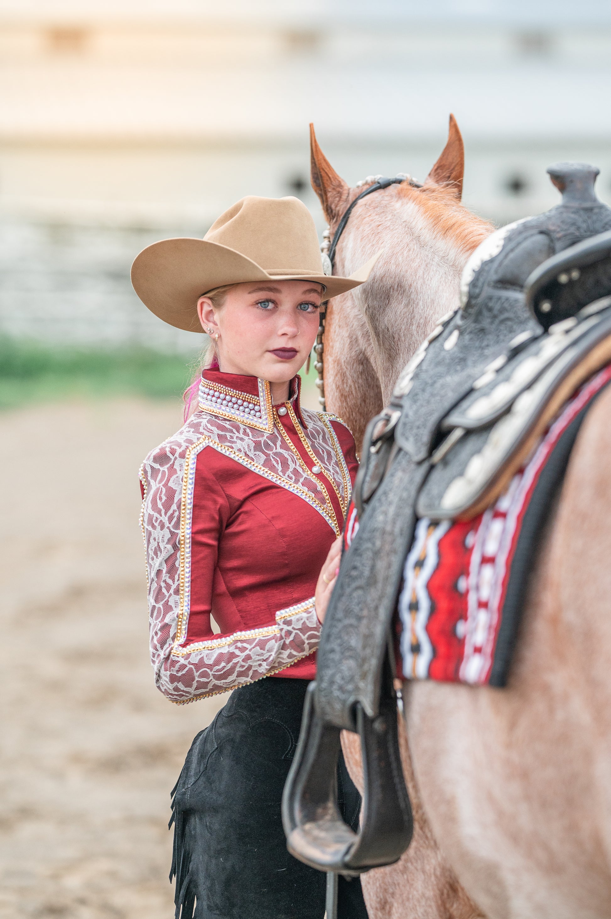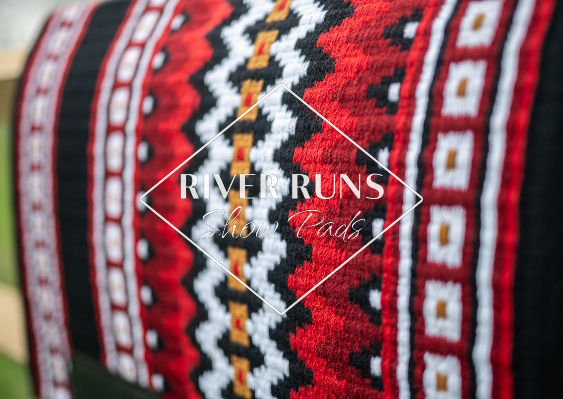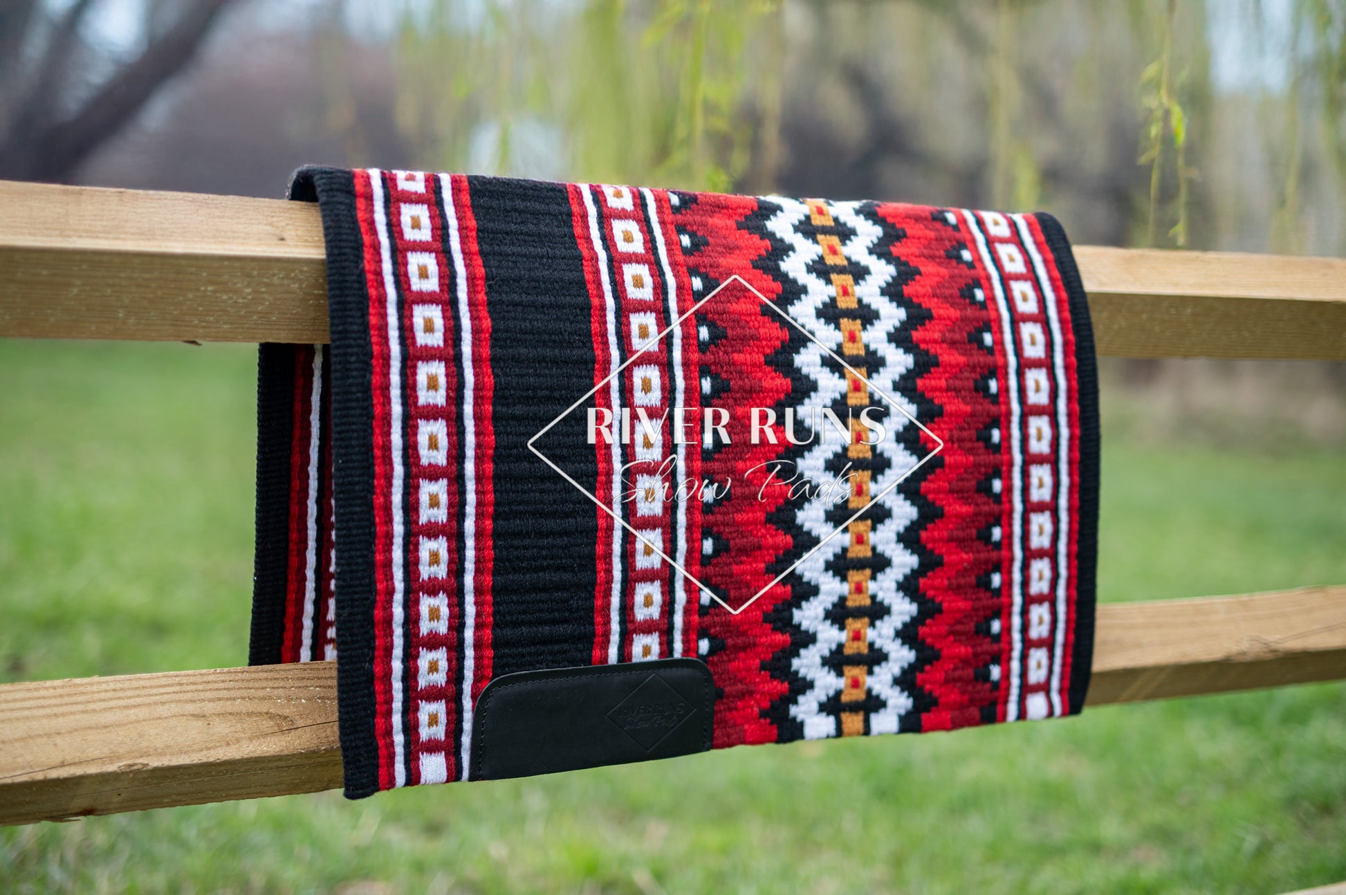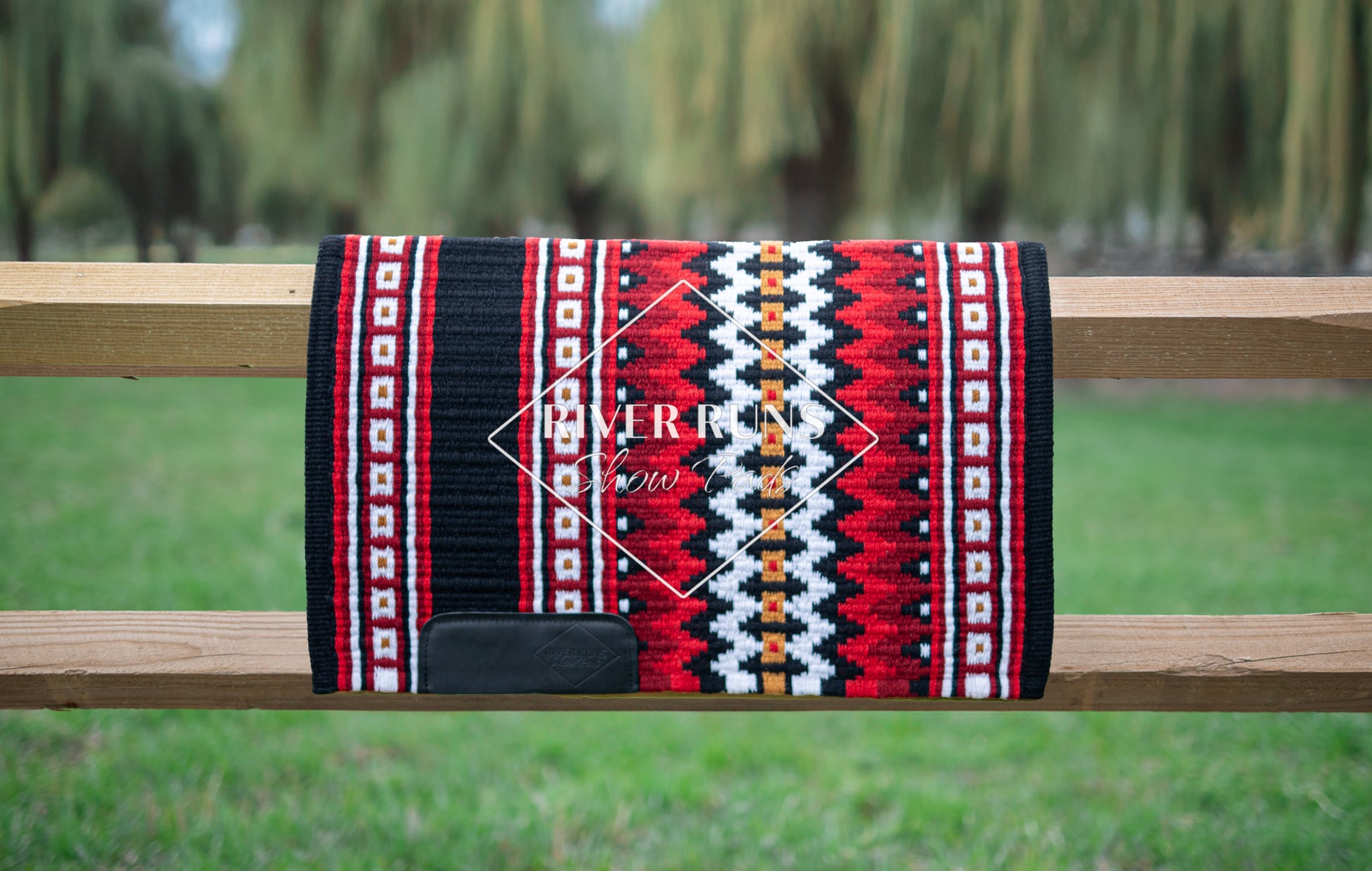 Black based pad accented with show red, earth red, gold and white.